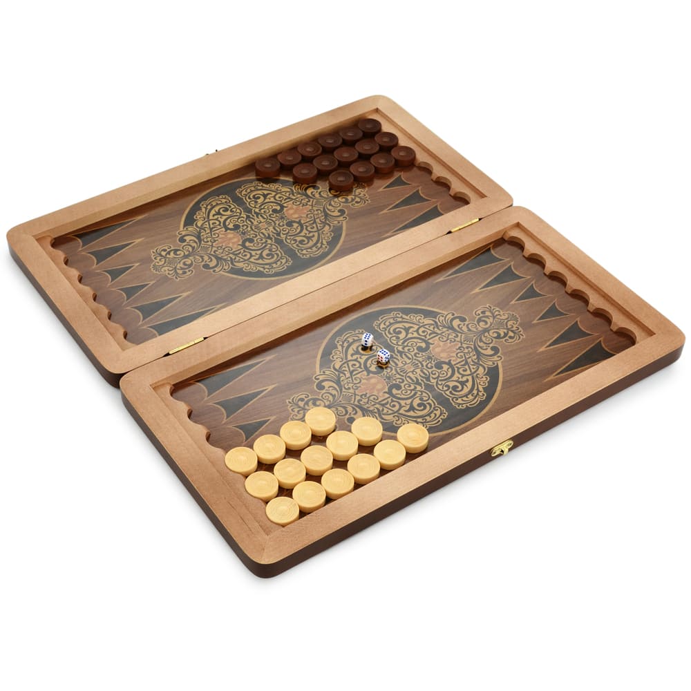 доска для игры в нарды, фишки, кости. |