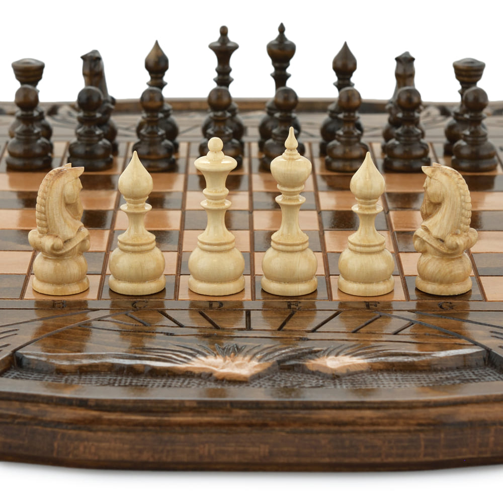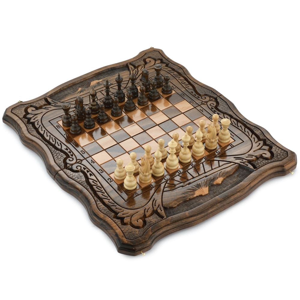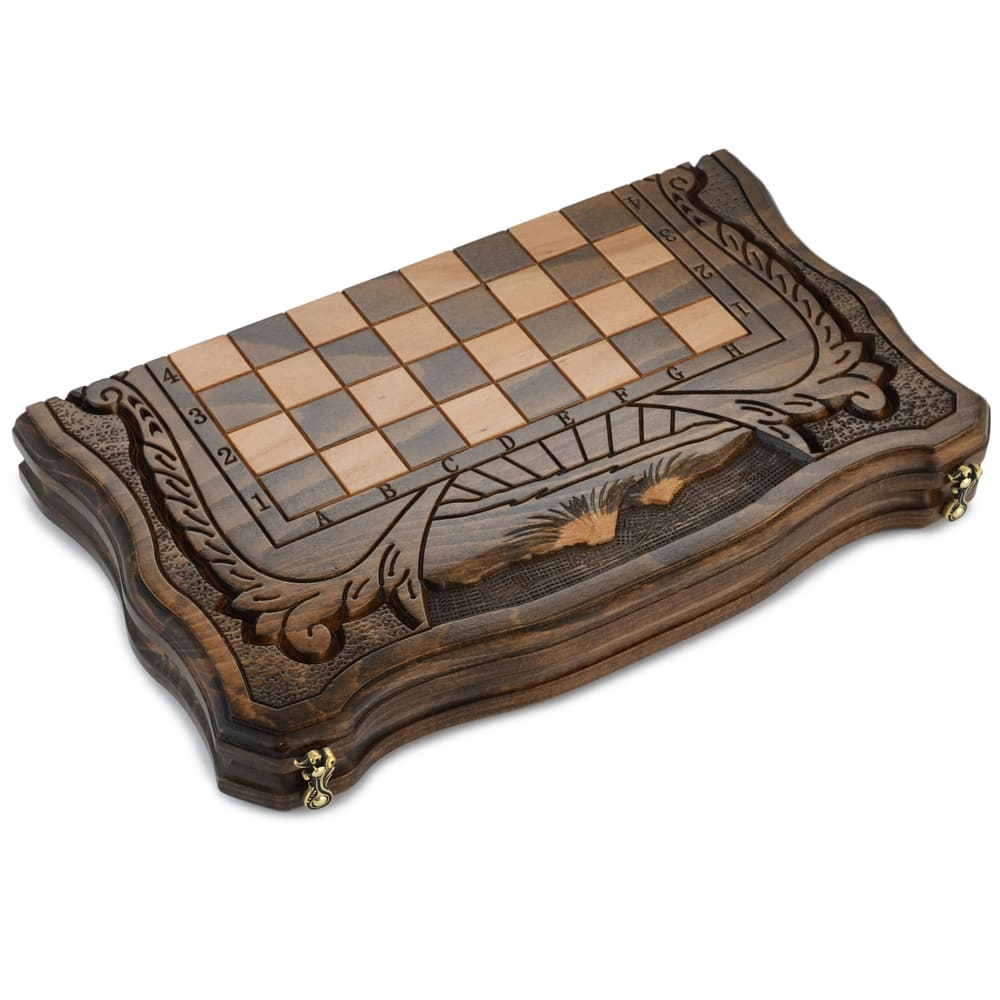 доска для игры в шахматы и нарды ручной работы, фишки, фигурки, кости, чехол. |